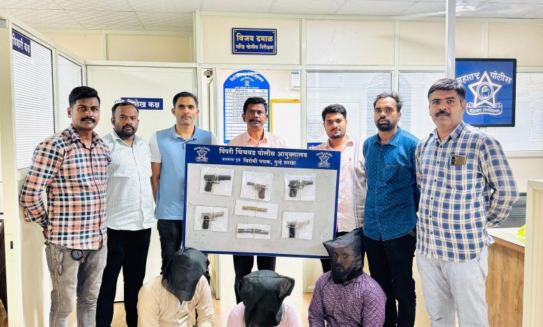 ०१/०६/२०२५ रोजी घडलेली घटना विरोधी लोकसभा पोशि/२६४३ सावंत यांना गुप्तसमाचार दारा, इसमाने कौमार्य कमांडर उलझाले आहे गणेश काही भ्रष्टाचारी घटना वपो पोलीस अंमलदार गणेश सावंत, पोहवा. सोमनाथ मोरे, पोहवा गणेश हिंगे, पोशिडु विनोद वीर, पोशि कदम देवकर, पोशिदु हर्षद जुना पुणे मुंबई हायल लगत, निलया समाज, तळे दाभाडे, मावळगाव, पुणे जिथून इसम नामे १) उमेश केदारी, चंद्रकांत, वय २८, राकोयतेवस्ती, पुनावळे, तांबी जिणे २) अशोक सातकर, वय २८, रान्हे, तामावळ, जि पुणे. ३) विशाल ज्योतीराम खातेकर, वय३०, रामोहितेवाडी, तामावळ, जिपुणे यांना वर्षे घेवुन त्यांचे ०५ पिस्टल, २० शक्ती काडतुसे व ०२ मॅक्झीन असे जप्त केले. सदर दल विरूद्ध तळे गाव पोलिस स्टेशन गु.र.न. ११८/२०५ भारतीय हत्यार कायदा कलम ३ (२५) महाराष्ट्र पोलीस कायदा कलम ३७ (३) सह १३५ कायद्यानुसार गुन्हा नोंदवला गेला. सदर गुन्ह्याचे सैन्यात पिस्तुले दहशत माजविन्याकरीता व तस्करी करणे निष्पन्न झाले. तसेच नमुद असूुन हे रेकॉडवर संघटित करत निष्पन्न झाले. यावे सदर गुन्हयात मा. अप्पर पोलिस कलम ३ (३) पाँक्रिप्ट चिचवड आदेश दिनांक २४/०२/२०२५ रोजी महाराष्ट्र संघ कायदा १९९९ चे कलम ३ (१) (ii) ४) प्रमाणे प्रदेश आला आहे. सदर गुन्ह्याचा अतिरिक्त मा. सहायक पोलिस सामो १, डॉ. विशाल हिरे करत आहेत.